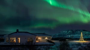 Luxuoso e bem localizado no Círculo Dourado, oferece vistas deslumbrantes e acomodações elegantes, ideal para ver a aurora boreal e explorar atrações próximas.